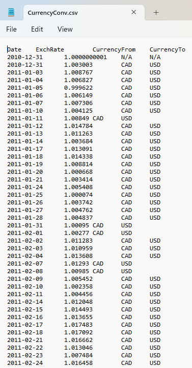 Currency Exchange Rates File - CurrencyConv.csv
